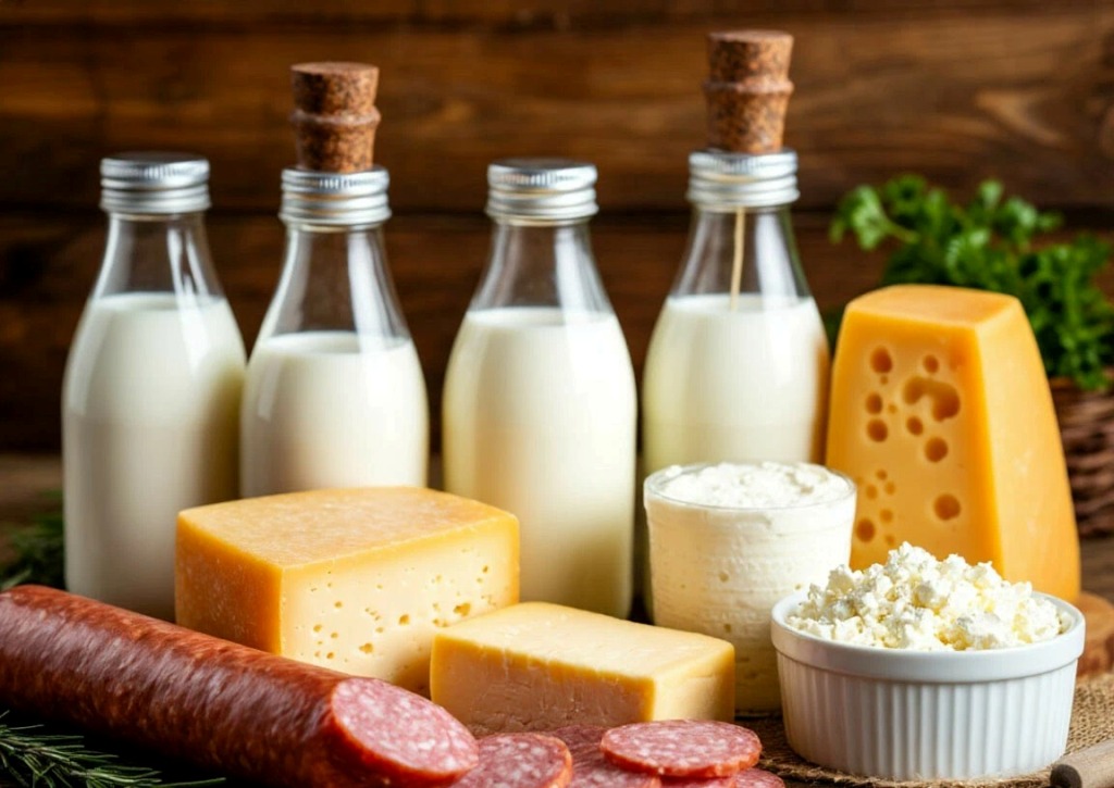 В продаже имеется широкий перечень мясной продукции, включая мясо на кости, антрекоты, субпродукты, фарши, мясо птицы (курица, утка), полуфабрикаты и колбасные изделия в промышленной упаковке. Молочная продукция представлена товарами производителей Новосибирской области, регионов Сибирского федерального округа, а также федеральных поставщиков.