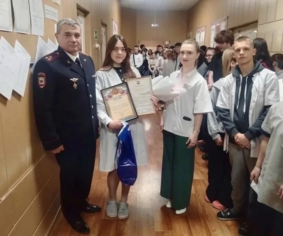 Руководство Межмуниципального отдела приняло решение поощрить девушку за честный поступок. Полковник полиции Александр Госперский совместно с членом Общественного совета Ириной Алёшиной посетили техникум и в торжественной обстановке вручили Василисе благодарственное письмо за честность и неравнодушие, отзывчивость и справедливость.